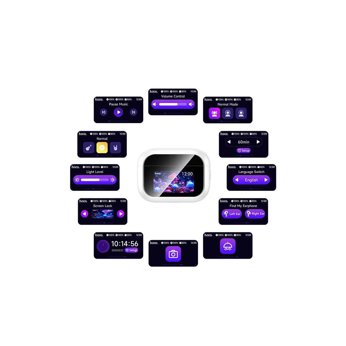 Swipe the case screen to adjust volume, switch tracks, or change noise reduction settings.