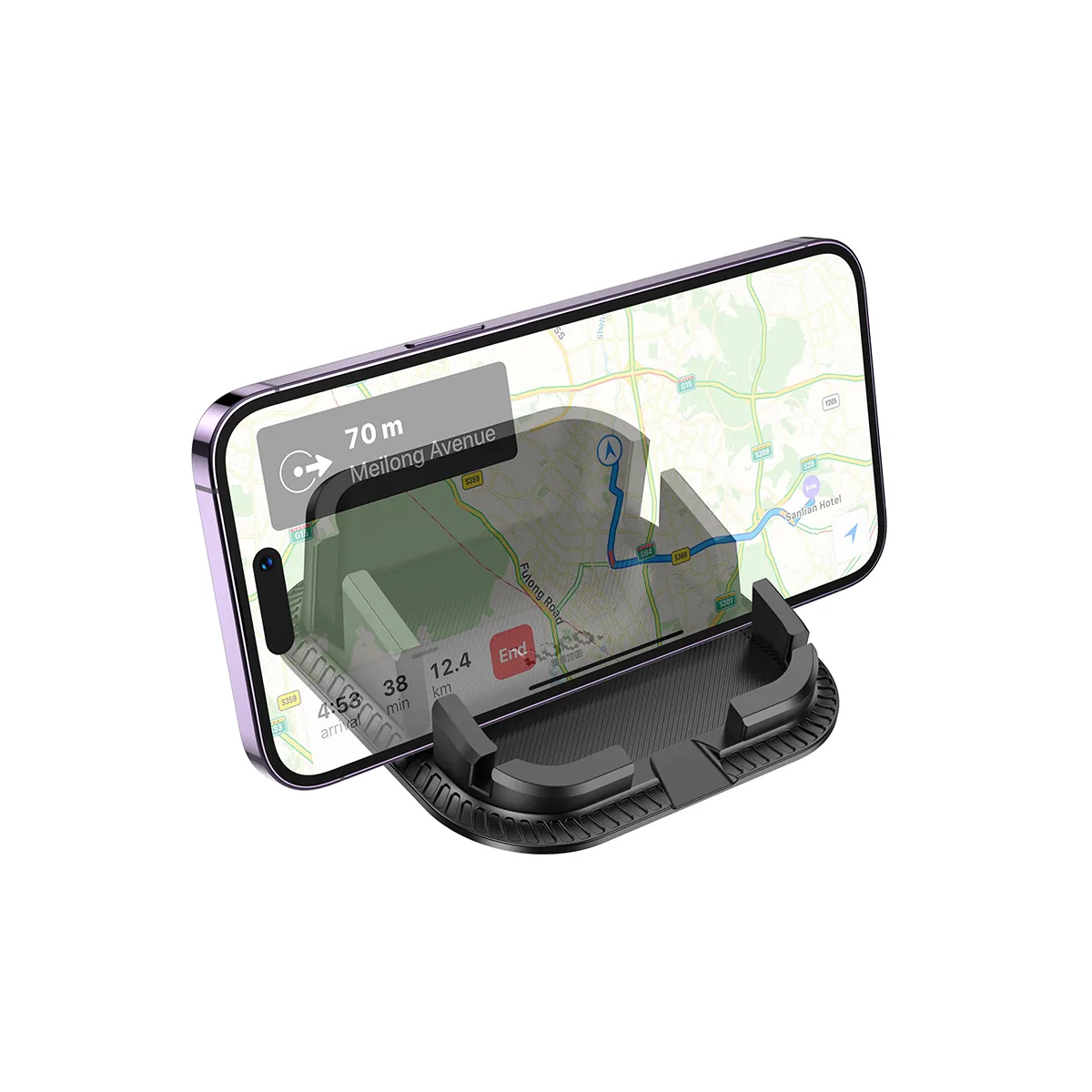 Non-adhesive silicone base grips your dashboard firmly without leaving residue.