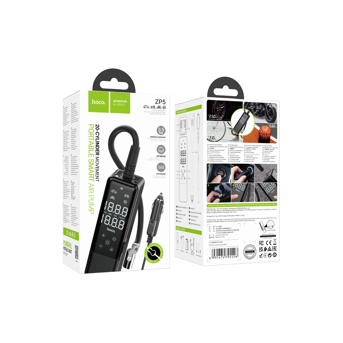 Supports 4 inflation modes: car, motorcycle, bicycle, and sports ball.